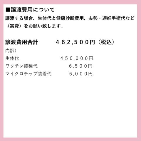 | ワクチン接種 | 接種済(混合ワクチン7種) |