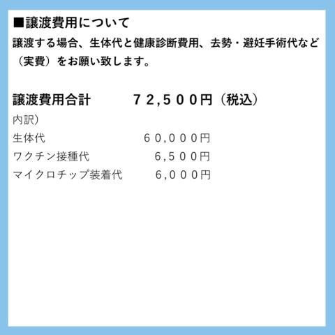 | ワクチン接種 | 接種済(混合ワクチン7種) |